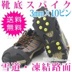 靴底 スパイク (3mm×10ピン) 滑り止め ソール グッズ 靴に付ける かんじき 雪道 氷道 凍結路面 路面凍結 転倒防止 両足セット 通常送料無料